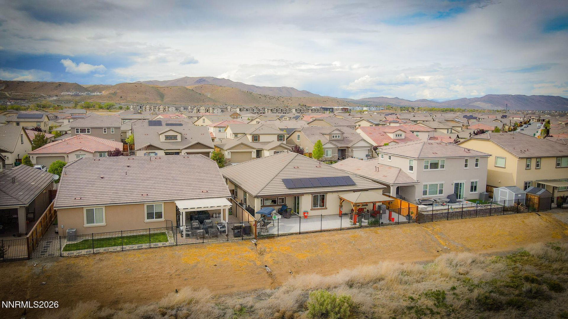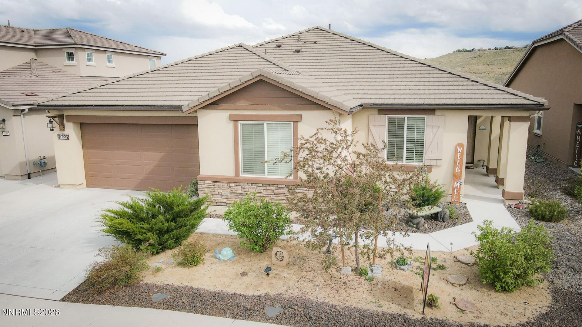 Built in 2020 and crafted with exceptional attention to detail, this spacious single-story home offers 4 bedrooms, 2.5 baths, and a 3 car garage. Set on a premium lot with no rear neighbors, the property captures beautiful views of surrounding mountains and rolling hills, creating a sense of privacy and serenity that's hard to find. Inside, the home shows like a model. An open floor plan is enhanced by custom paint, upgraded flooring, and incredible custom wood ceiling beams that add architectural character. The kitchen is a true centerpiece, featuring granite countertops, decorative glass tile backsplash, upgraded pendant lighting, large pantry, and a built-in wine cabinet with glass shelving. Crown molding, upgraded door casings, and custom craftsman touches are found throughout, elevating every room with a designer feel. Inside, the home shows like a model. The exterior is equally impressive. Custom exterior lighting, extensive concrete work includes a huge patio, walkways, and additional driveway parking - perfect for entertaining, outdoor dining, or simply enjoying the peaceful views. A striking stucco and stone fa?ade add curb appeal and sets the tone for the quality found inside. With its premium lot, thoughtful upgrades, and high-end finishes, this home blends luxury, comfort, and style in every detail. A rare opportunity to own a truly turnkey property that stands out from the rest. The Seller has also added solar panels. Buyer to assume payments on solar of 67.00 monthly.